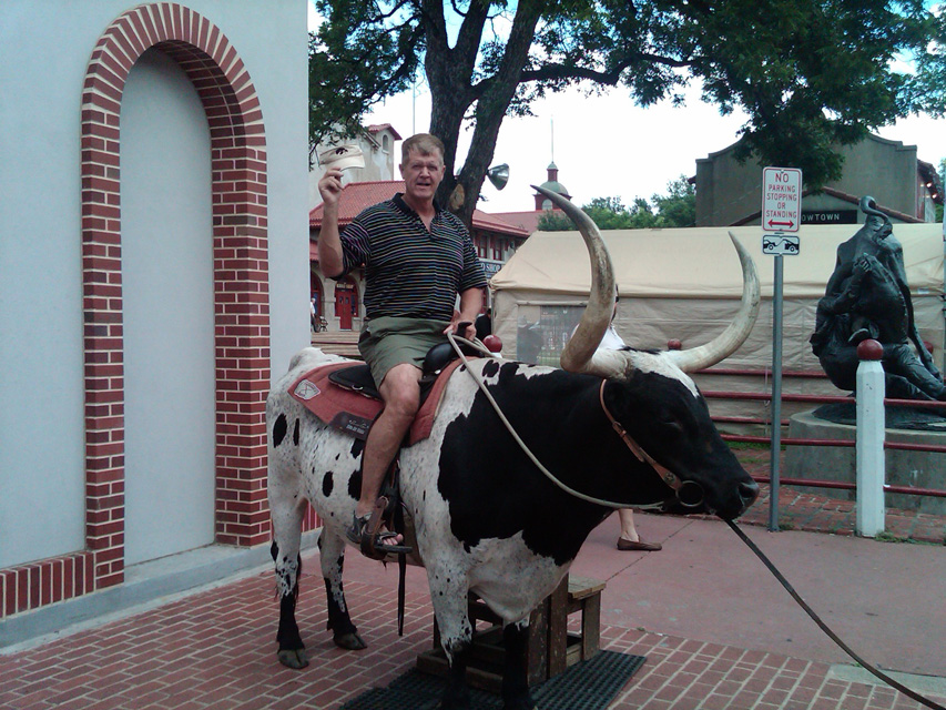 The Oil Man Returns!! RT is getting back from his training in Texas on Friday and he has quite the tales to tell. Three weeks working in 105 degrees, killing a water moccasin, dodging spiders and working with oil has him bursting with interesting stories. It was not all work, though. He got a tour of Texas Stadium, watched the Dallas Cowboys practice, saw the birthplace of Dan Blocker (Hoss of Bonanza fame), saw George Foreman's home, the Jim Reeves Memorial, saw real wild hogs and toured the Fort Worth Stockyards. The highlight of his site seeing was going to Billy Bob's. Randy took his family there 25 years ago and Tanya Tucker was performing, so he goes back and guess who was up on stage singing? Tanya Tucker, believe it or not. The Highwayman is back for the weekend, then heads to North Dakota. He sent the following pictures.