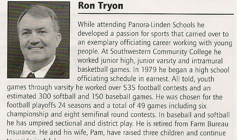 Cousin Ron!!Inducted into the Iowa Officials Hall of Fame! Click The Picture for the official article, (Photo by Dale) |