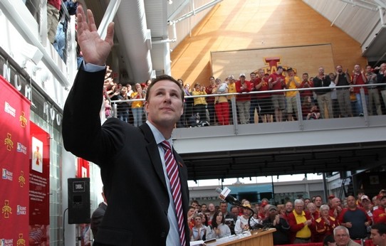 Iowa State has announced that they are hiring Fred Hoiberg as their new Men's Basketball coach. So who is wearing their Fred Hoiberg jersey to work today? (Fred is a former ISU basketball star) Hint: At the half time of an ISU vs Iowa exhibition game in Carroll, Freddy was introduced with this person and he gave him/her a BIG KISS!! The year was 1995. The Answer to the quiz is.......Julie (I know, Brett seemed pretty logical) Jerry and Big John rigged it so Julie could meet Hoiberg at a halftime presentation, so out on the court, in front of the crowd, he smacks her.....Wow......thanks to all for voting. |