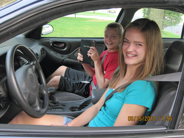 My........The insurance rates in Story County just got higher as Nicole turned sweet sixteen and NOW HAS HER DRIVER'S LICENSE!!! So take extra precaution as you drive in Central Iowa. Zach was the first to ride with her and notice he took his bible with him!! Congrats, Nicole, this is very exciting news!! Tim and Kim are really proud!!