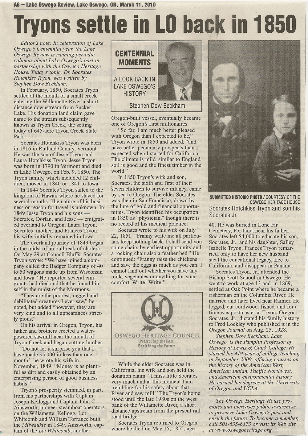 In Oregon!!Dale found the following article about Tryons in Oregon. Not sure if we are related, but there must be a good chance as they came from Iowa. Click The Picture. I made it larger so it would be easier to read. |