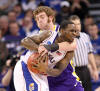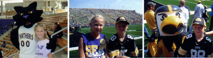 STUNS THE BASKETBALL WORLD!!UNI's Men's Basketball team dominates #1 seed Kansas 69-67, leading the entire game. IT IS THE GREATEST BASKETBALL VICTORY IN UNI HISTORY!!! But wait, a devoted UNI Panther fan MISSED THE GAME!!.....Yes, Tim was seen eating out at Living History Farms on Saturday and missed the greatest game EVER in UNI history!!! Shonna, Sherry and Todd P all cheered for the purple and the gold, but not Tim. It was DATE NIGHT.....heh heh, heh.........My how things have changed. Now ,back in 1990, Sherry, Tim and Todd were sitting in a Northern Iowa dorm room as a guy named Newbie nailed a last second shot to defeat Missouri in the NCAA'S, but I guess as we get older, we forget about school loyalty. Zach, Nicole and Natalie were cheering on the Panthers, so maybe that counts for something. Congrats to the UNI Panthers and all of their fans!! Man, does this open up the NCAA Contest, wow!! UPDATE #1......Tim FORGOT to set his VCR to tape the game, anyone have a copy for our Sap Of The Month? UPDATE #2....as posted on the Tryon Bulletin Board: "...biggest UNI fan seen running the streets of LaPorte City with UNI flag!! (His favorite Christmas present!) Not sure if he had time to even put on his shoes!! ....could be seen joining Forrest Gump running all the way to St. Louis with the same flag!?! Run Forrest RUN!!!!!" Hmmmm, who do we know in LaPorte City? Now you have to give them some slack, they are Chicago Cub fans, you know, and they do not get to celebrate very often....... |