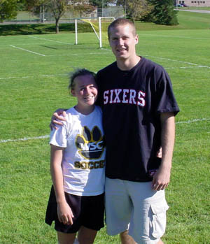 Brett Scores Career High 29 Points!! Leads ALL scorers in Triple Overtime Victory!!! A 118-111 win for Wayne State at Minnesota Crookston. The Cats climb to 5-2 in conference play. Brett scored 14 points in the extra play. Super job of leading the big second half comeback. Great job Brett! (Can somebody buy Mark the announcer some tape?) #2 Morningside Loses 71-67 In Kansas City! Beth scores a couple against an outstanding team in KC. Watsons in attendance. |