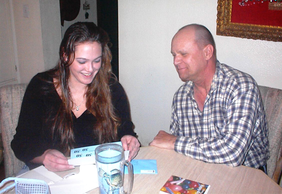 A Very Special Thank You!! I received a memorable phone call from Maxine last night and she wanted to thank all of the family that sent Jack something for his 50th birthday. (Still not too late) She said words could not describe the joy, laughter and tears of all that read the cards and email to Jack. He usually goes to bed at 6:00 pm, so they went out to eat around 5:00. He does realize what is going on and recognized the pictures and who wrote what. He cannot speak, but can show that he understands. Thank you, thank you, thank you......Way to go Tryons! I told Max that people really were impressed with Steve's drawing at Christmas and she told Deb, who sent me a few examples. They are truly wonderful. Steve was taught how to do this by another inmate, who has since been paroled. Steve started with scenery, then animals and is now doing people. Friends claim he has passed up his teacher in quality. If the drawings appear too dark or too light, that is the camera settings, not the drawings themselves. I tried to "fix" them, but may have changed them too much. Click Here To View Steve's Drawings and again, Maxine and her family send their best to all of us. |
